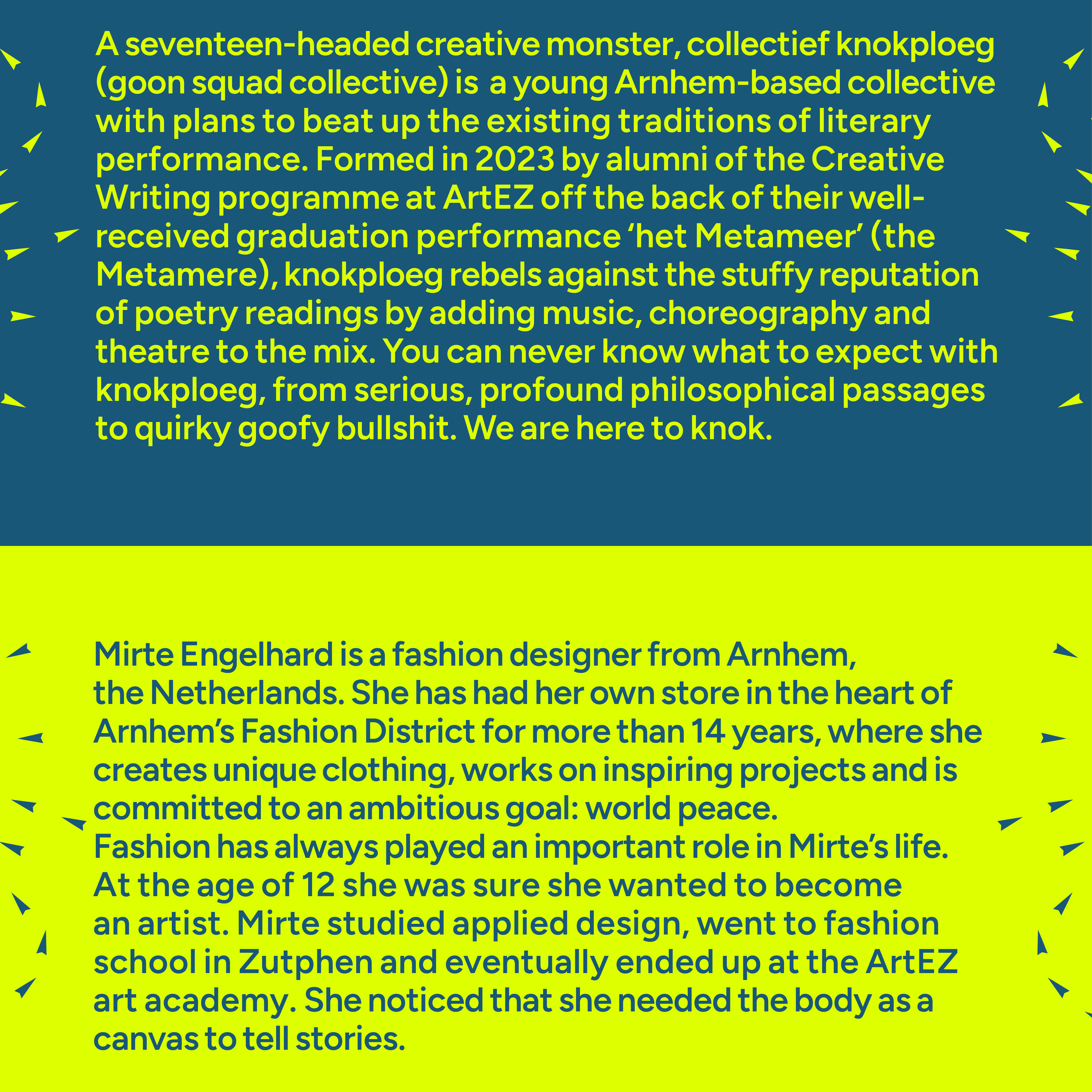 By hosting a one-day alumni residency happening in the hallways of ArtEZ Arnhem, the program connects Art & Design alumni with ArtEZ and its current students. After the residency, they continue with an artist discussion at The Hub Arnhem.