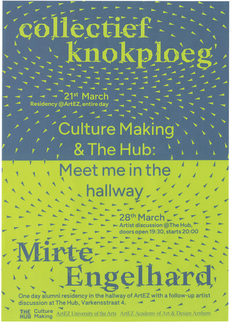 Poster series for Culture making & The Hub: Meet me in the hallway, a vibrant program initiated by Culture Making and The Hub Arnhem.