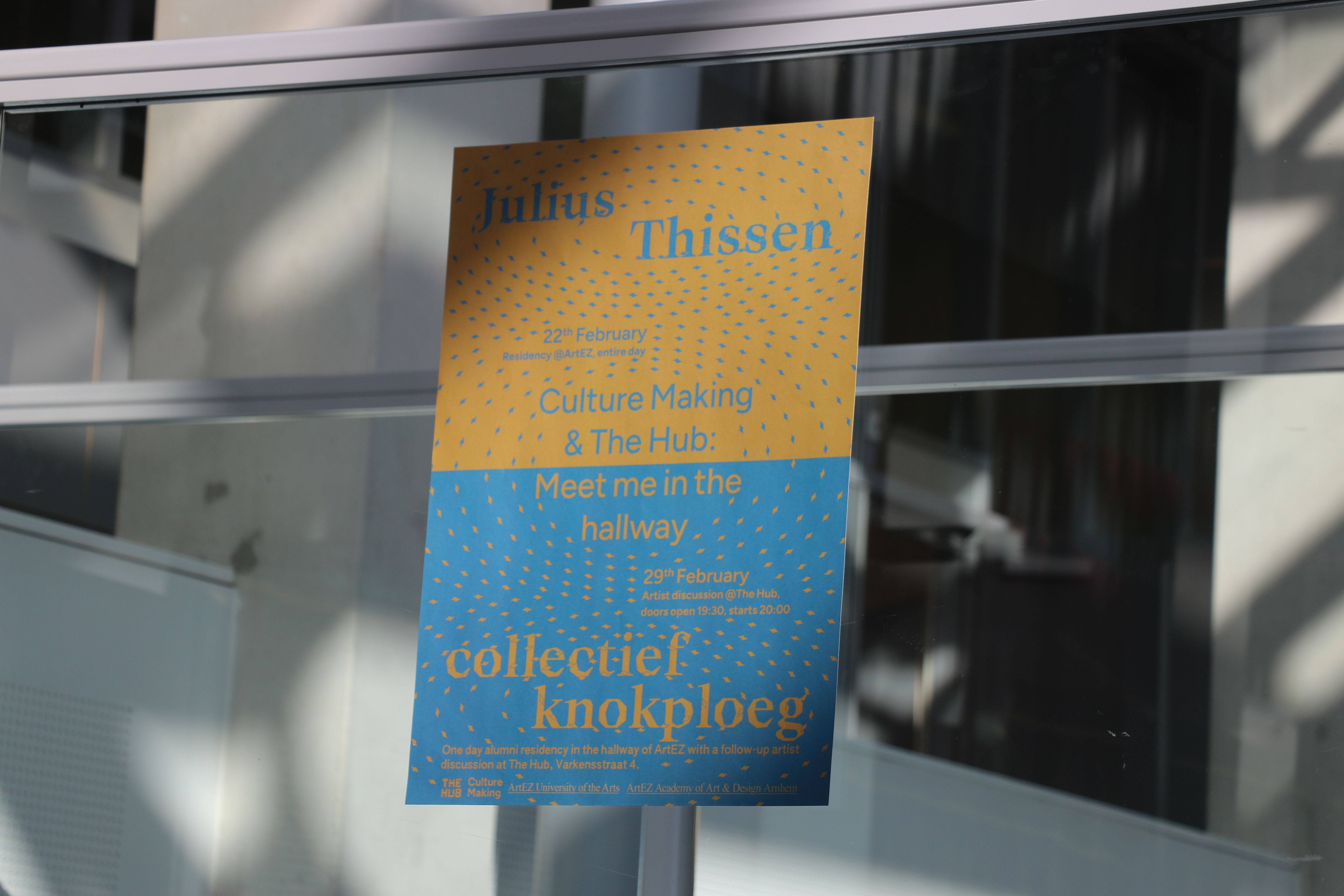 By hosting a one-day alumni residency happening in the hallways of ArtEZ Arnhem, the program connects Art & Design alumni with ArtEZ and its current students. After the residency, they continue with an artist discussion at The Hub Arnhem.