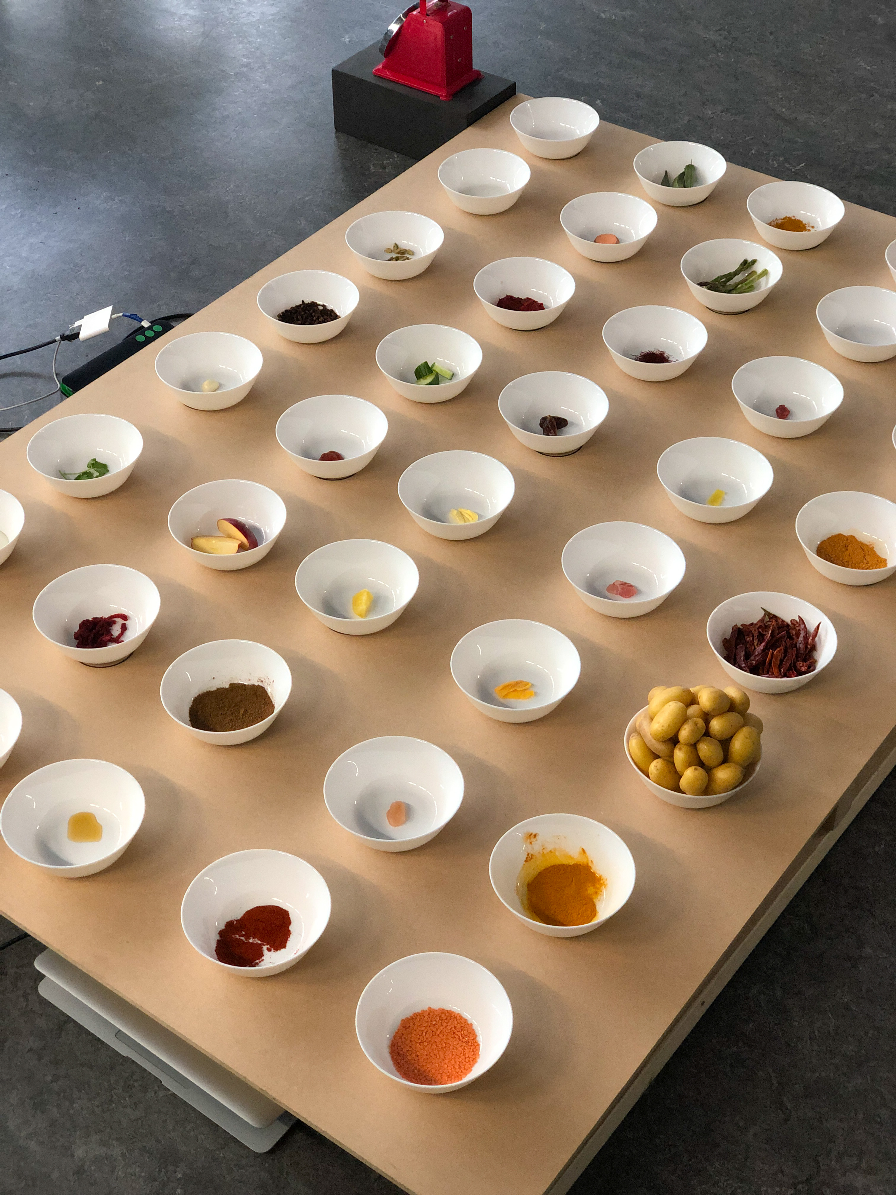 A project that is exploring a way to show the diversity of people living in the city of Arnhem. We built a data installation of Arnhem through food by using the official website “Arnhem in Numbers” to collect the percentages of different nationalities residing in the city. We asked all 40 nationalities to tell something about the ingredient they used most in their kitchen. The end result is a physical form of a Data Visualization, an olfactory experience and a conversation starter about the recognizable and the unknown.