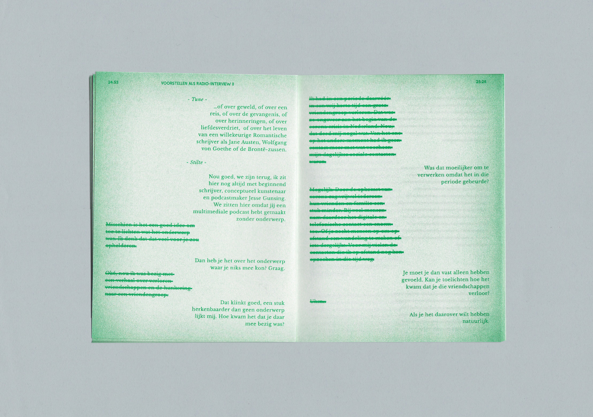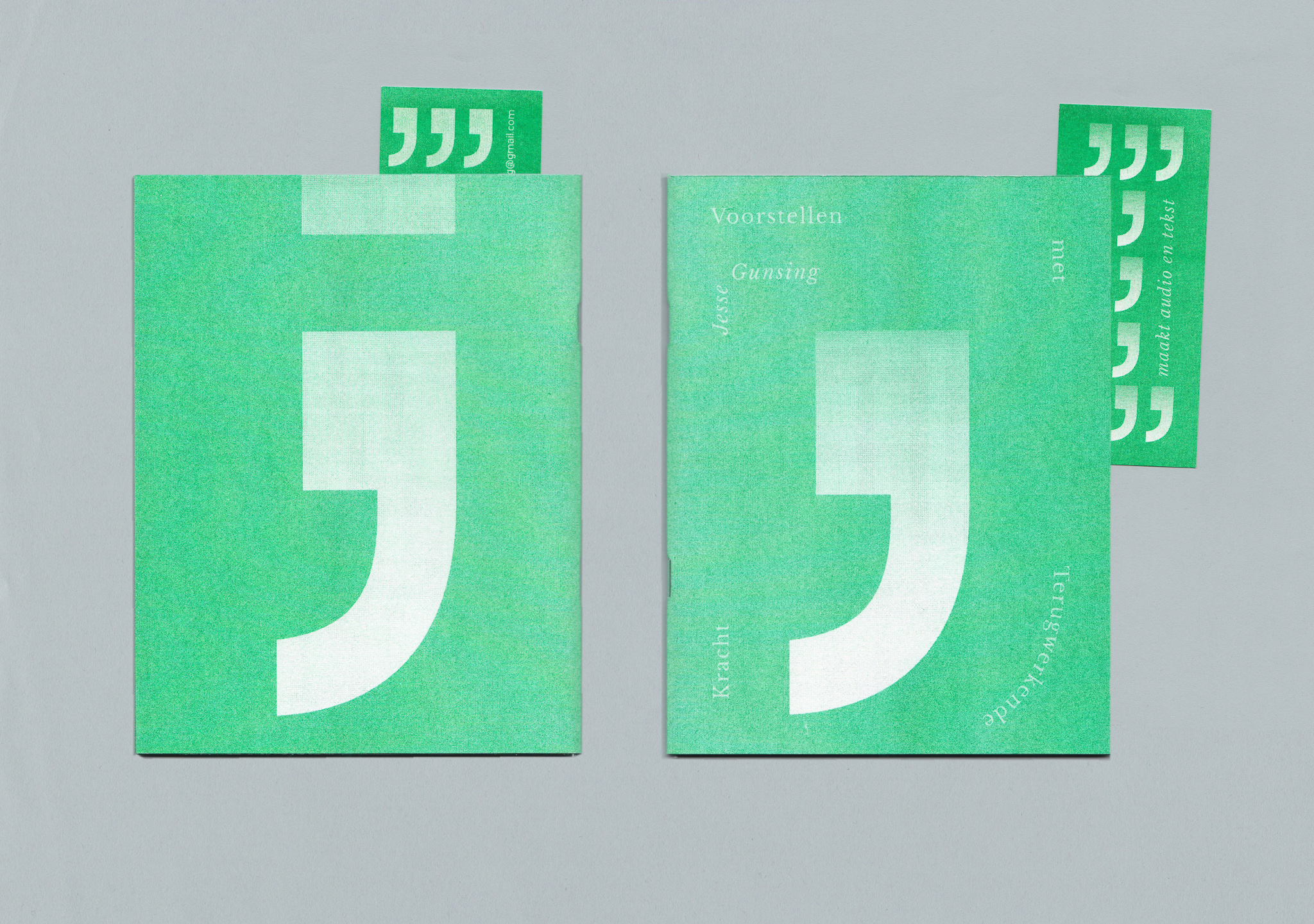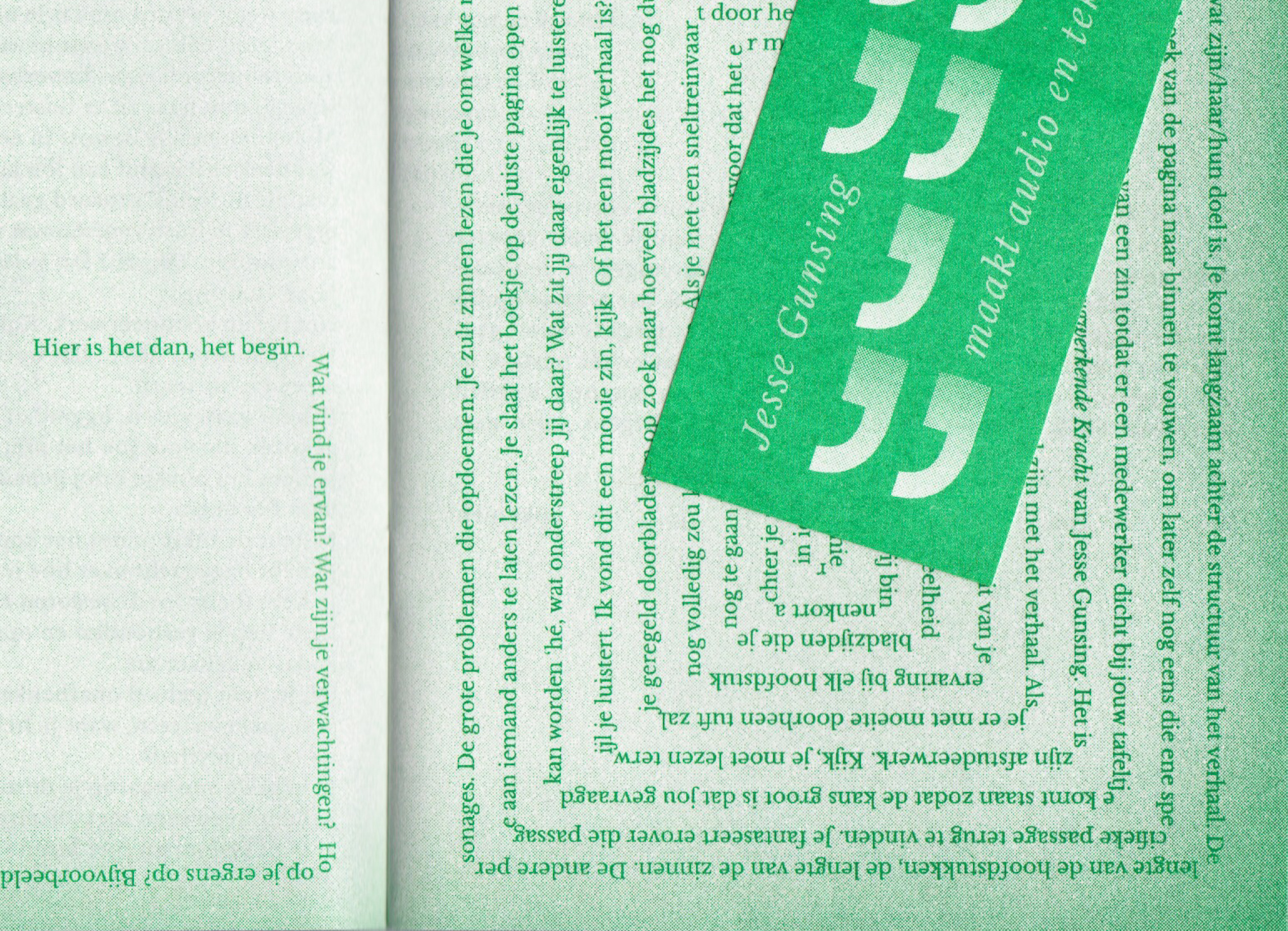 Design of the publication and bookmarks for the graduation work of Jesse Gunsing; 'Voorstellen met Terugwerkende Kracht'. The publication accompanies his audio work.